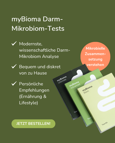 Übrigens: Die myBioma Mikrobiom-Tests ermöglichen dir spannende Einblicke in die Zusammensetzung deines invdividuellen Mikrobioms. Der Mikrobiom-Test Ultimate zeigt dir durch den Parameter „körperliches Wohlbefinden" sogar, wie gut deine Darmbakterien deine Fitness unterstützen!