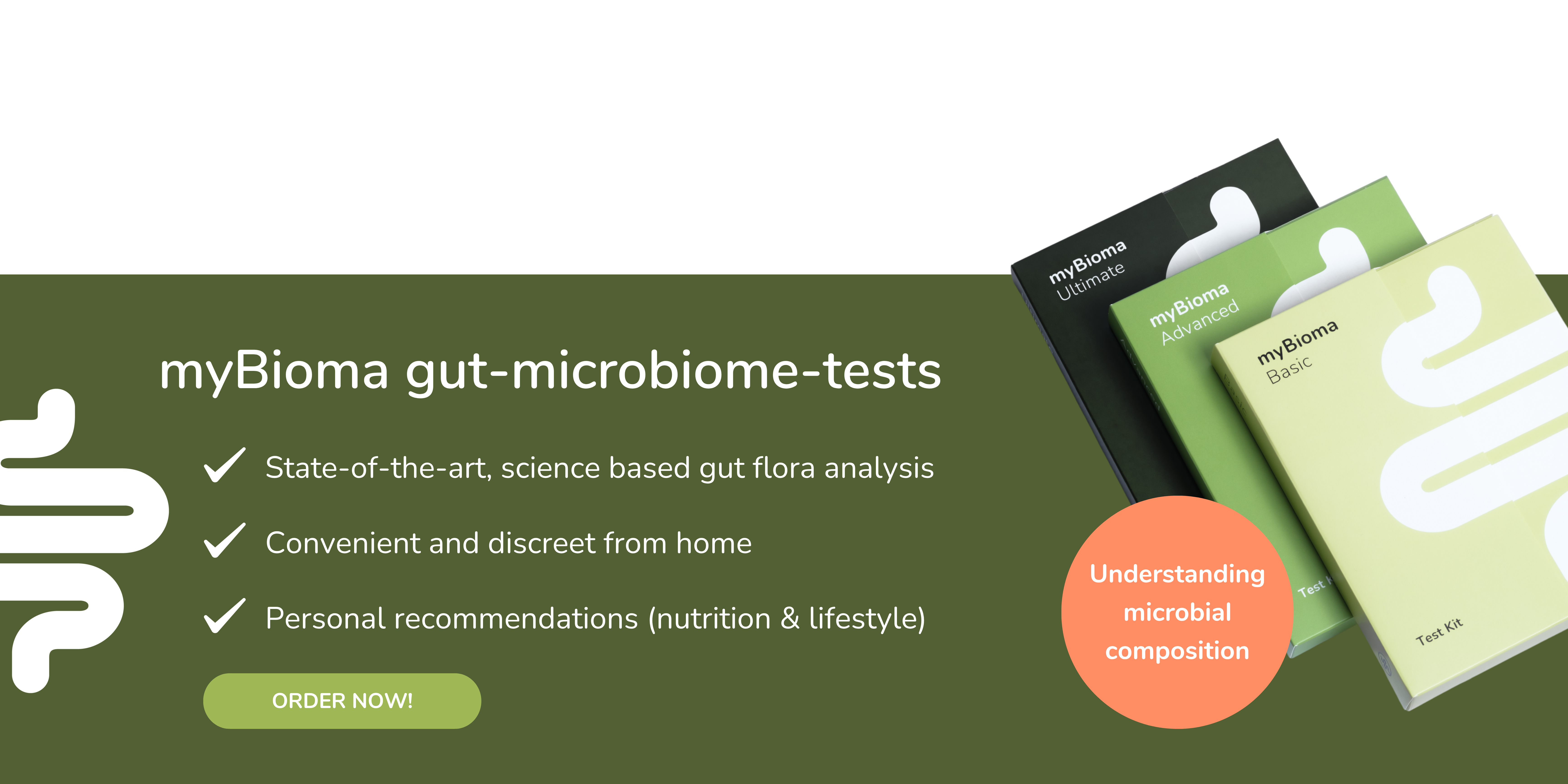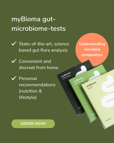 By the way: The myBioma Microbiome-Tests provide exciting insights into the composition of your individual microbiome. The Microbiome-Test Ultimate even shows you how well your gut bacteria support your physical wellbeing and fitness.
