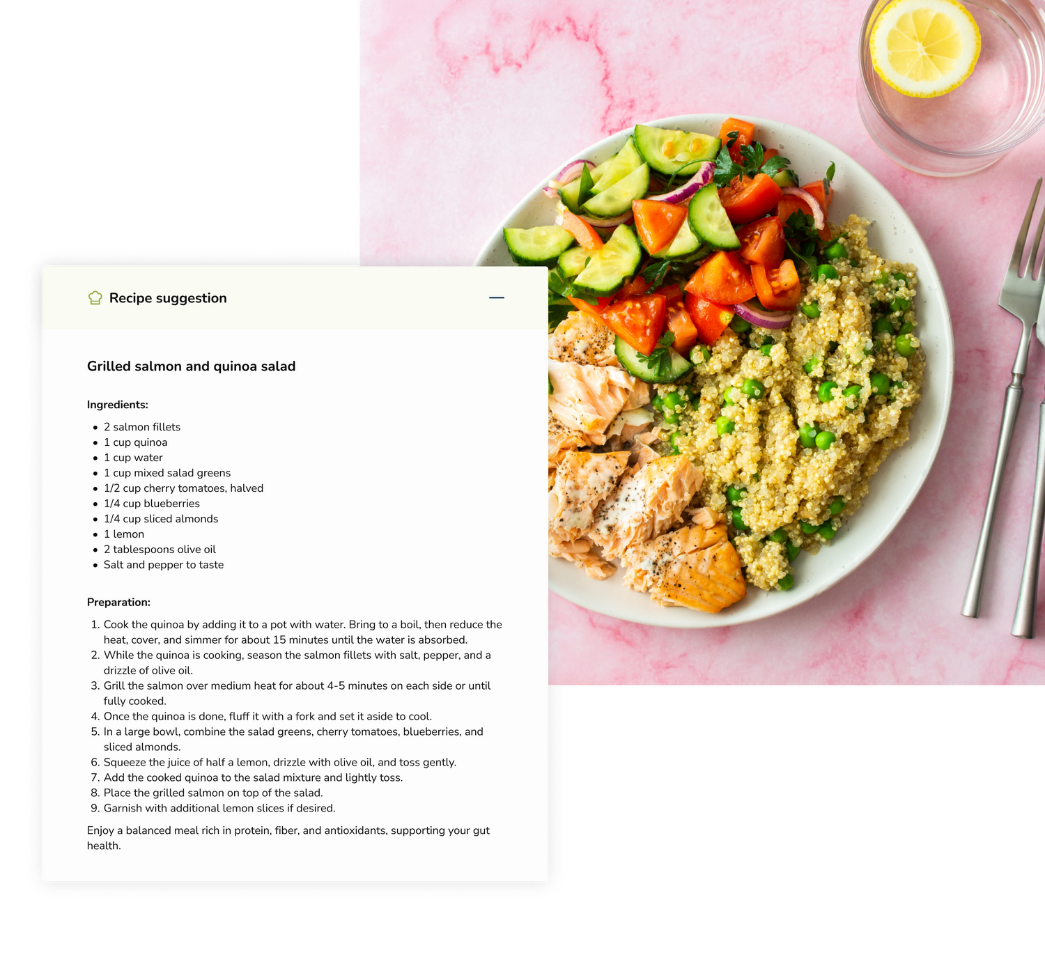 Use tailored dietary tips and recipe ideas based on your results to promote long-term gut health.