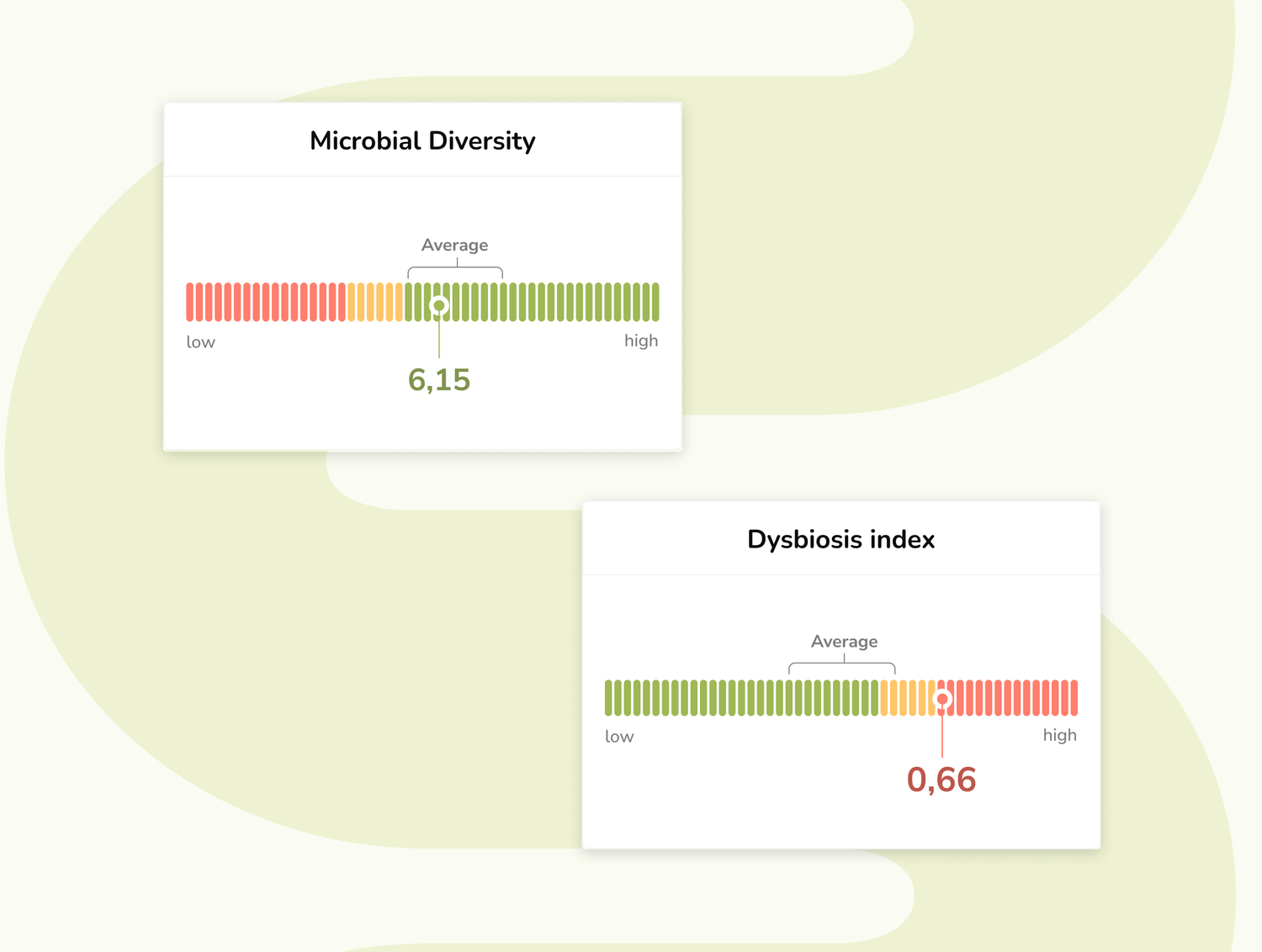 The diversity and dysbiosis values play a decisive role in your gut health and provide information on whether your microbiome is in balance.