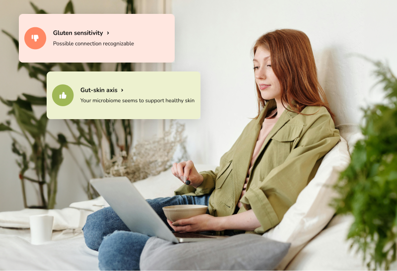Along with a comprehensive insight into the profile of your bacterial composition and its effects on your health, you’ll also receive nutrition recommendations tailored to your gut. These are easy to integrate into your daily routine and help restore and maintain the balance of your microbiome.