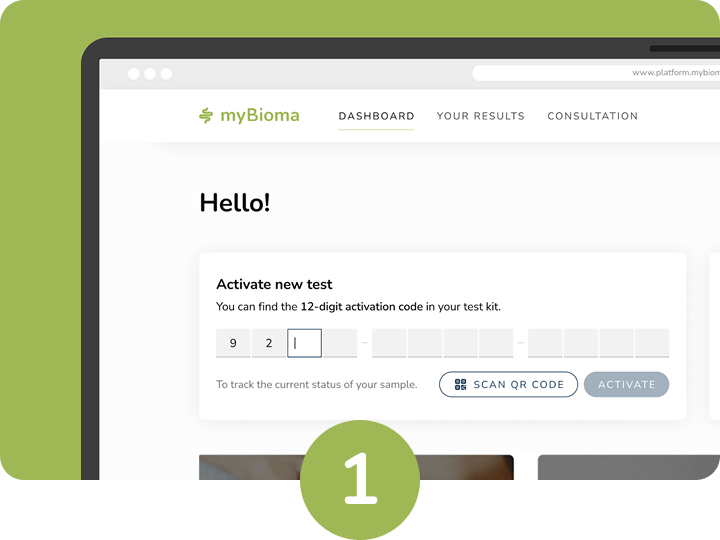 After receiving your test, activate it on the myBioma platform. This step is necessary so you can receive status updates on your sample and results.