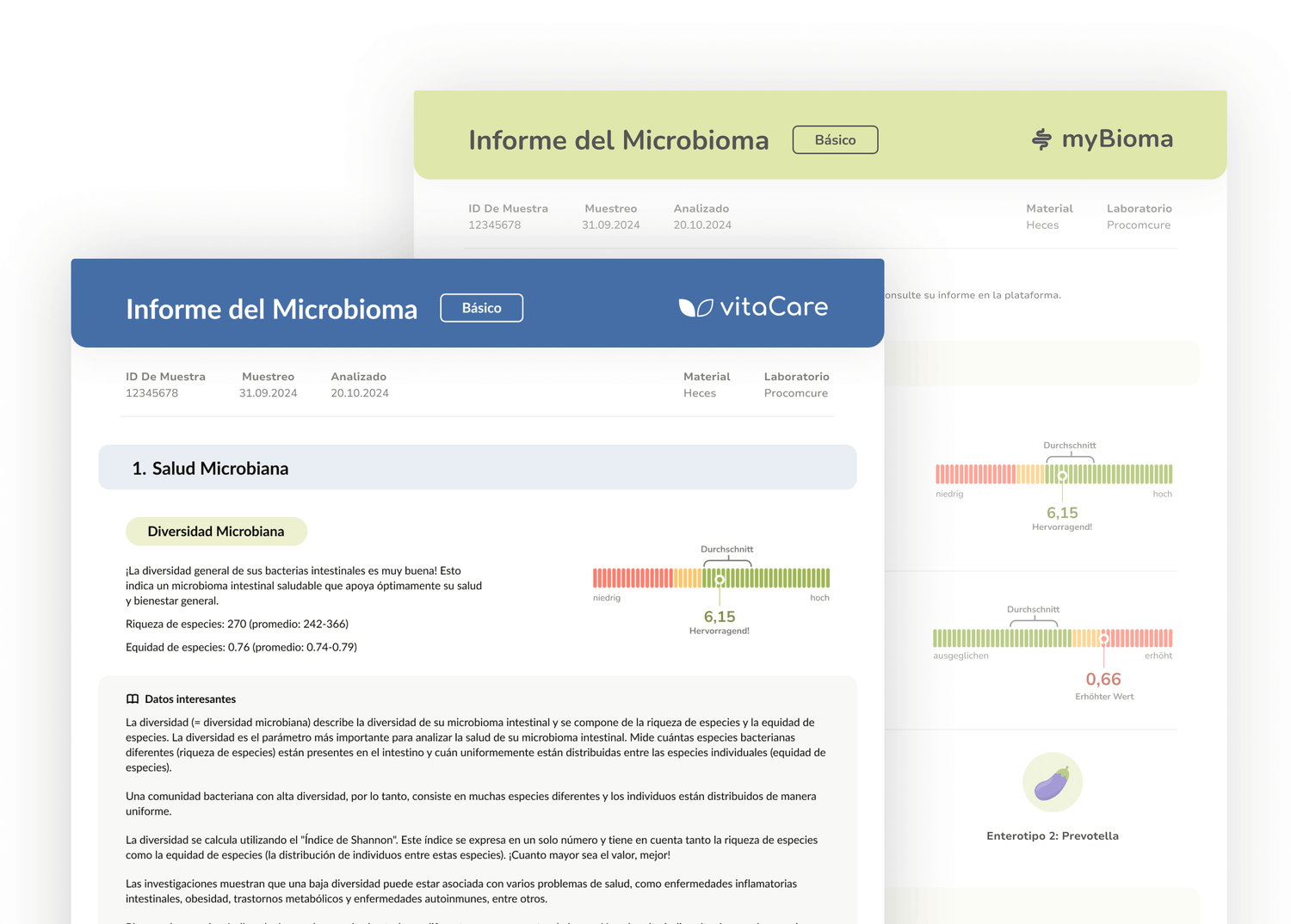 Dé a su producto un toque personal: colores, logotipos y diseño totalmente a su medida. Adaptamos el informe del microbioma de forma individual a su manual de marca, para que su producto sea único y encaje perfectamente con su marca.