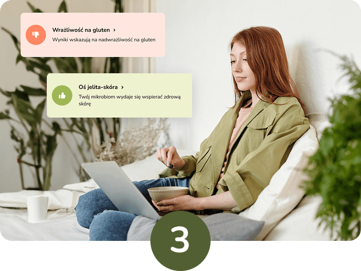 Dokładnie analizując Twój indywidualny mikrobiom, możemy wykorzystać Twoje wyniki do stworzenia spersonalizowanych rekomendacji, które pomogą Ci poprawić zdrowie jelit. Wiemy, że zmiana diety może być wyzwaniem, dlatego nasze zalecenia są formułowane i przedstawiane w sposób łatwy do zrozumienia, tak abyś z łatwością mógł je wdrożyć w swoje codzienne życie. Jeśli masz jakiekolwiek pytania, możesz w każdej chwili skontaktować się z naszym wsparciem.