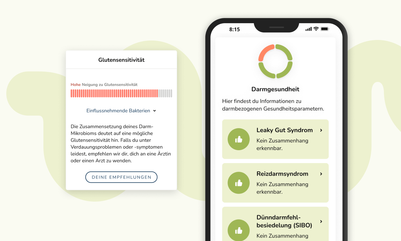 Wir stellen keine Diagnosen, sondern zeigen dir auf, inwiefern deine Darmbakterien mit Symptomen wie Leaky Gut, SIBO, Reizdarm oder einer Glutensensitivität in Verbindung stehen. Sollten die Ergebnisse einen möglichen Zusammenhang zwischen deinen Darmbakterien und den Symptomen aufzeigen, empfehlen wir dir, einen Arzt aufzusuchen.