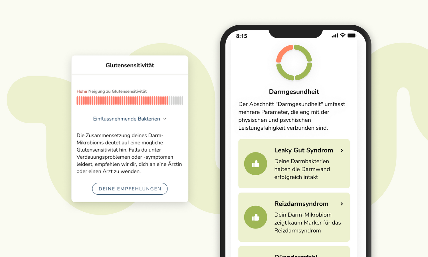 Aufgrund der Zusammensetzung deiner Darmbakterien können Rückschlüsse auf ein mögliches Vorhandensein von Leaky Gut, SIBO, Glutensensitivität oder Reizdarm geschlossen werden.