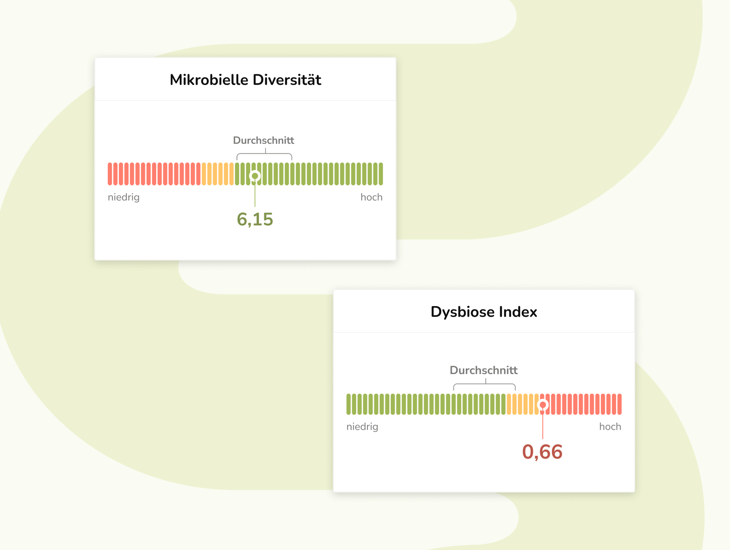 Die Werte Diversität und Dysbiose spielen eine entscheidende Rolle für deine Darmgesundheit und geben Aufschluss darüber, ob dein Mikrobiom im Gleichgewicht ist.
